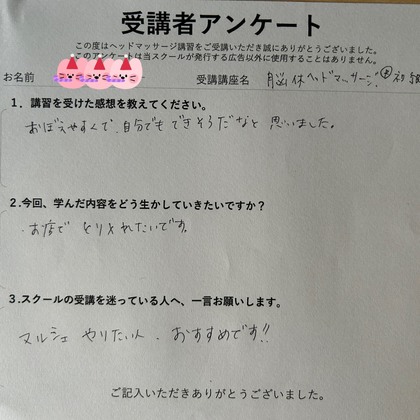 ハンド、耳つぼ、ヘッド…とにかくリラクゼーション講座を学びまくっている、“学ぶことが趣味”の方。