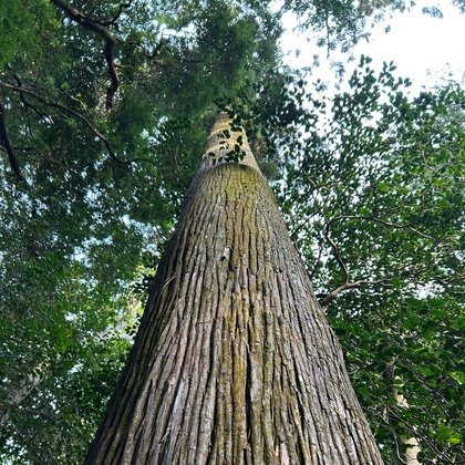 参道には、空へまっすぐ伸びる杉の木が何本も。