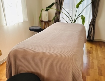 施術では、首肩がガチガチに固まっていたため、背中からアプローチしながら、首肩まわりを重点的に。